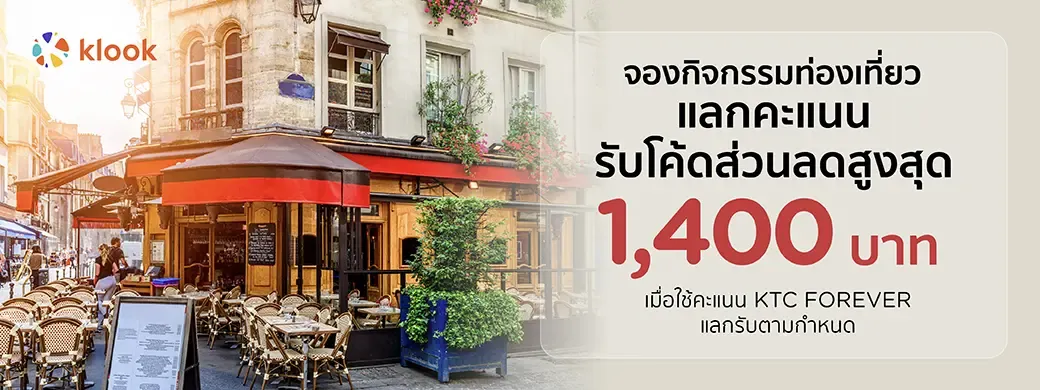 - 10,000 KTC FOREVER = discount coupon 1400 Baht with min spend 5,000 THB