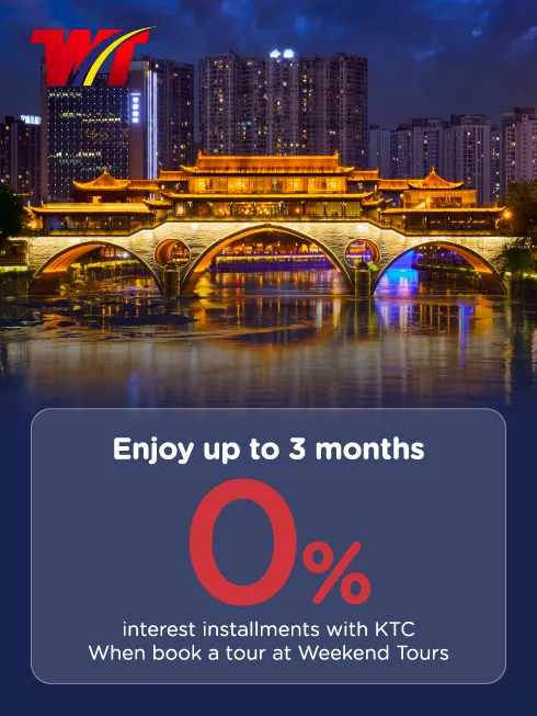 When booking a package tour (exclude INCENTIVE GROUP) at Weekend Tours , customers can select 3 months of 0% interest installment payment with KTC credit card.
