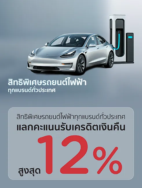 When booking, down payment, or servicing of all types of EV cars from any brands such as Volvo, BYD, DENZA, CHANGAN, GWM, MG, KIA, AION, Hyundai, TESLA, XPENG, ZEEKR, GEELY, OMODA JAECOO, or NETA ETC, member can redeem points to receive up to 12% cash back.