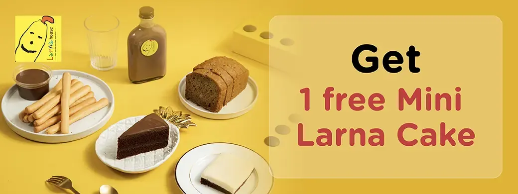 Get 1 free Mini Larna Cake valued at 60 Baht when spending 600 Baht / sales slip