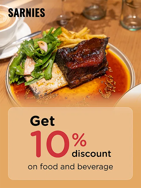 Get 10% discount on food and beverage