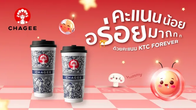 ChageeRedeem 899 KTC FOREVER Points to receive an e-Coupon code for 1 Large Milk Tea beverage valued up to THB 1 Oct 25 - 31 Mar 26