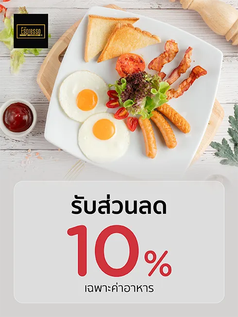 Get 10% discount on food only. When spending 1,500 baht or more/ sales slip