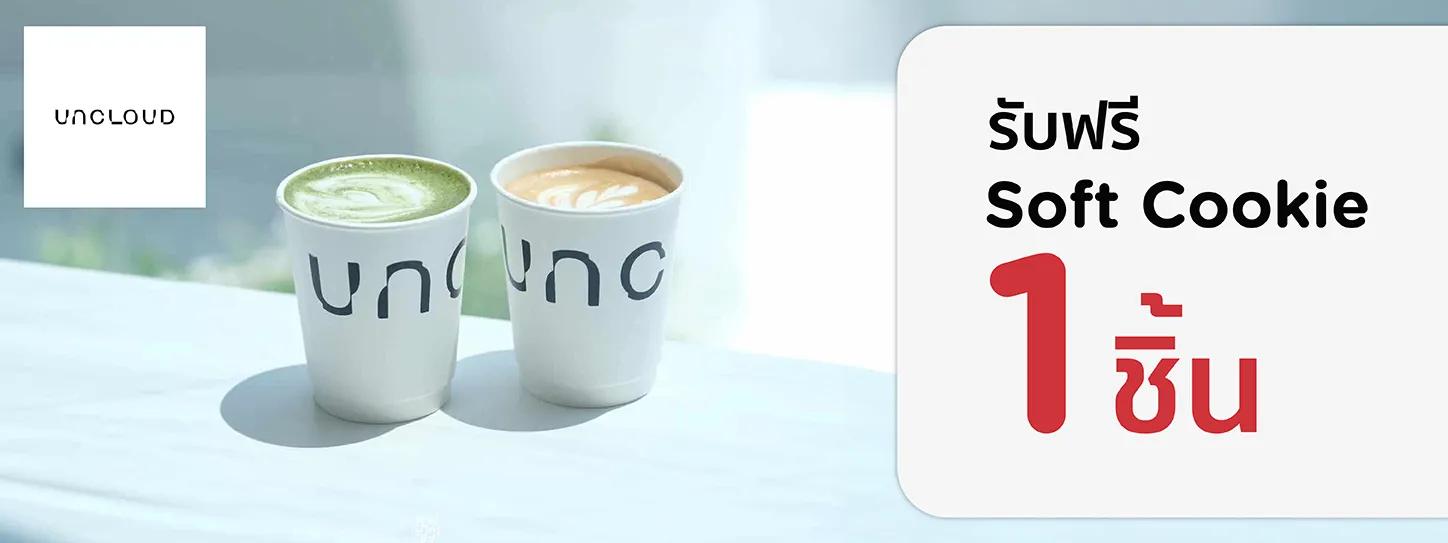 Get 1 free Soft Cookie valued up to 80 Baht when spending 1,000 Baht or more.