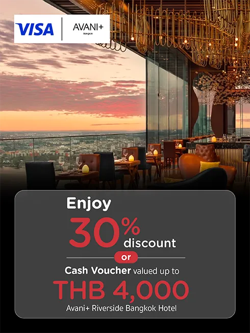 Receive a complimentary dining voucher valued THB 1,000 when dine every THB 10,000 (voucher valued up to THB 4,000 per card per time)