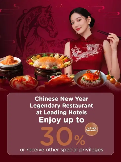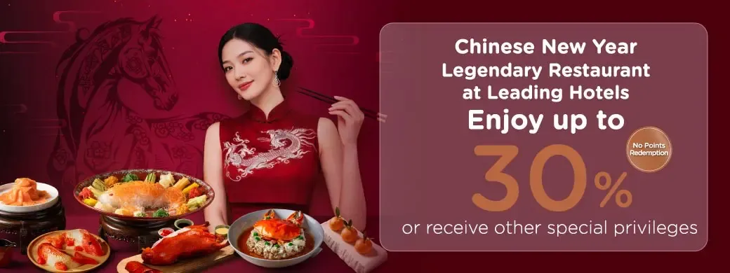 Enjoy discount up to 30% at participating Chinese Restaurants in the leading hotels
