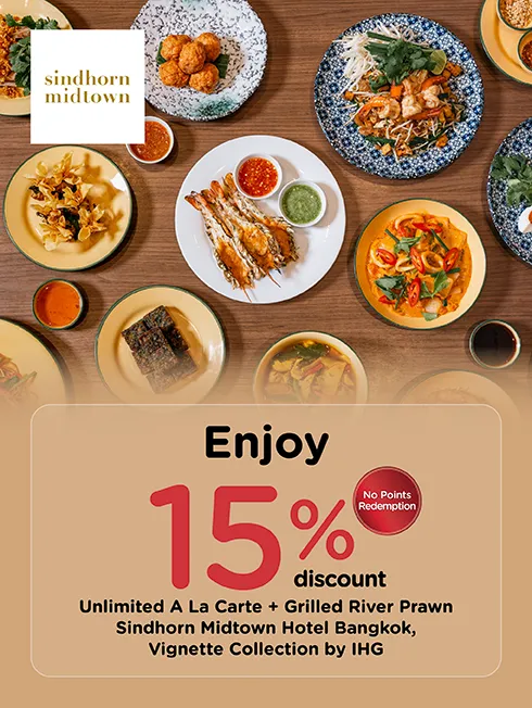 Special price THB 1,275 net per person (Regular price THB 1,499 net) including free-flow soft beverages
