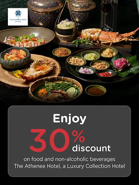 • Enjoy 30% discount on food (A La carte menu & Set Menu) and non-alcoholic beverages
