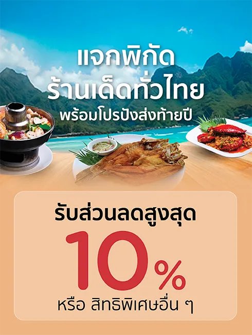 Privilege 2 : Redeem KTC FOREVER Points for credit cash back 10% at participating restaurants in Prachuap Khiri Khan.