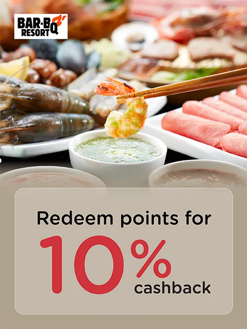 Redeem points for 10% cashback (available for KTC credit card only) equal to spending amount per sales slip.
