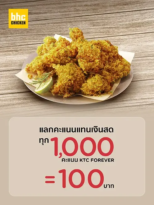 - This promotional campaign (“Promotion”) is provided by Krungthai Card Public Company Limited or KTC to offer the exclusive privileges to members of KTC credit card (“Cardmembers”) who have KTC FOREVER points (“KTC Points”) and spend on card at all BHC Chicken branches during 1 January 2026 - 31 December 2026 (“Promotion Period”) according to the specified terms and conditions only.