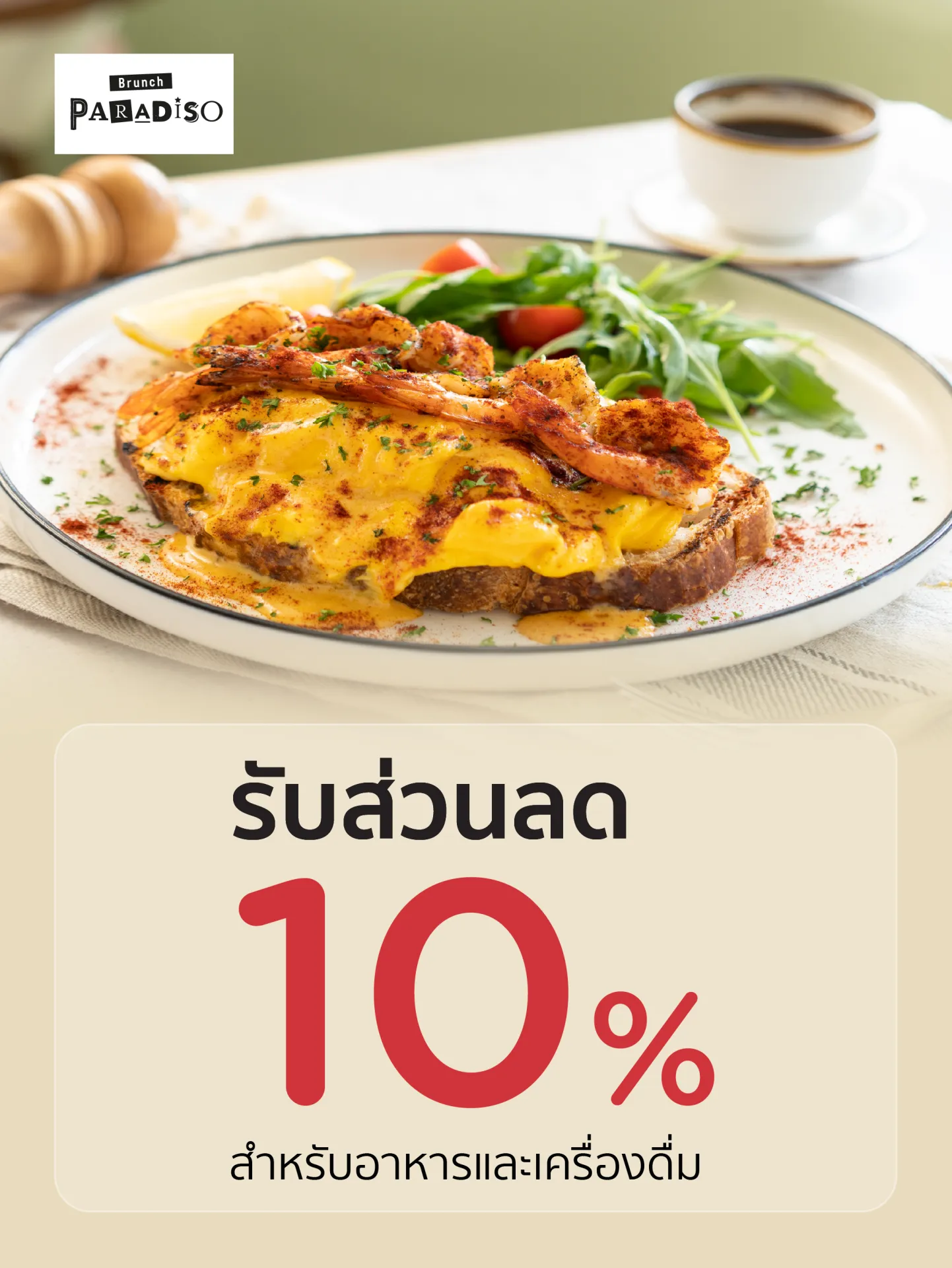 Get 10% discount on food and beverage when spending 1,000 Baht/sales slip