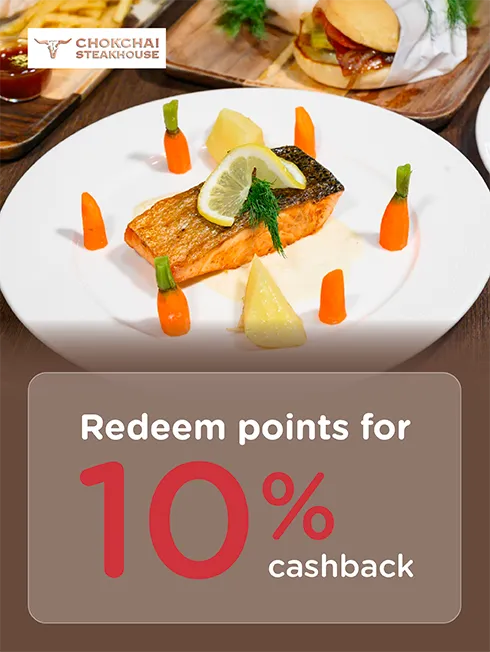 - This promotional campaign (“Promotion”) is provided by Krungthai Card Public Company Limited or KTC to offer the exclusive privileges to members of KTC credit card who have KTC FOREVER points (“KTC Points”) and spend on card at Chokchai Steakhouse during 1 Apr 25 - 31 Mar 26 (“Promotion Period”) according to the specified terms and conditions only.