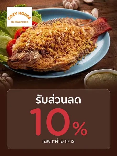 Get 10% discount on food only When spending 1,000 Baht/Sales Slip
