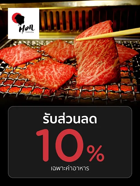 Get 10% discount on food only When spending 1,000 Baht/ sales slip