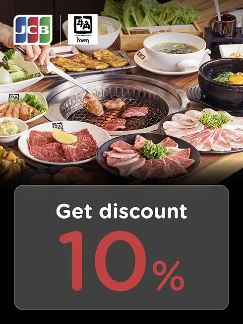 when have minimum payment of 1,000 THB / sales slip (before discount) and pay with all types of KTC JCB credit card at all Gyukaku branches