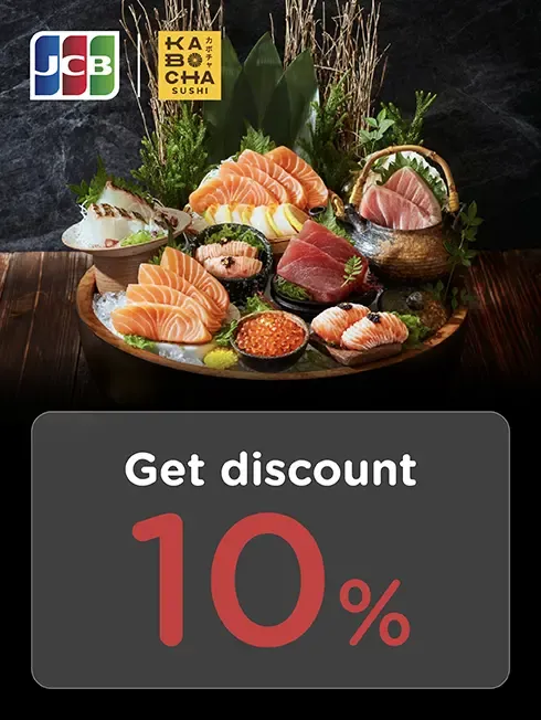when have minimum payment of 2,000 THB / sales slip (before discount) and pay with all types of KTC JCB credit card at all Kabocha sushi branches.