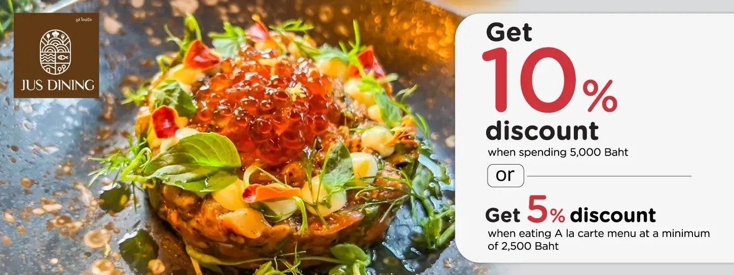 Get 5% discount when eating A la carte menu at a minimum of 2,500 baht / sales slip