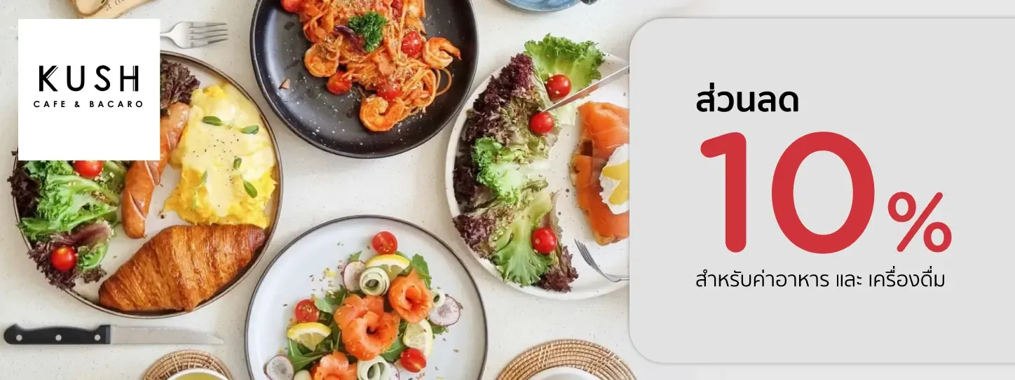 Get 10% Discount on food and beverages when spending THB 500 or more per sale slip