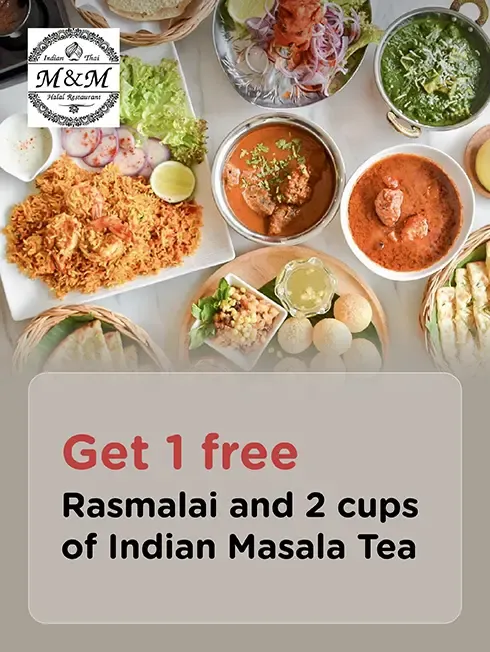 Get 1 free Rasmalai and 2 cups of Indian Masala Tea when spending 2,000 Baht / sales slip