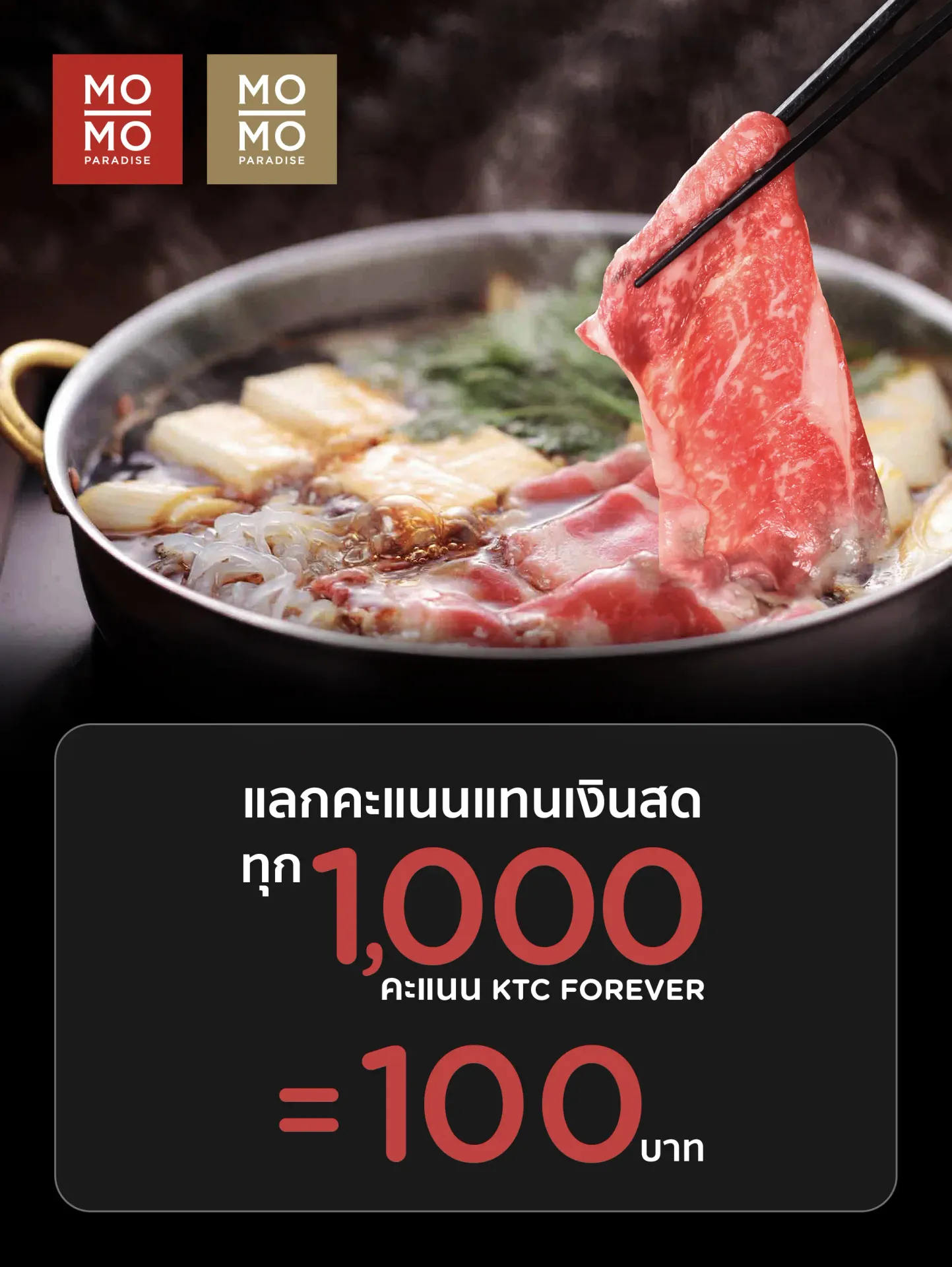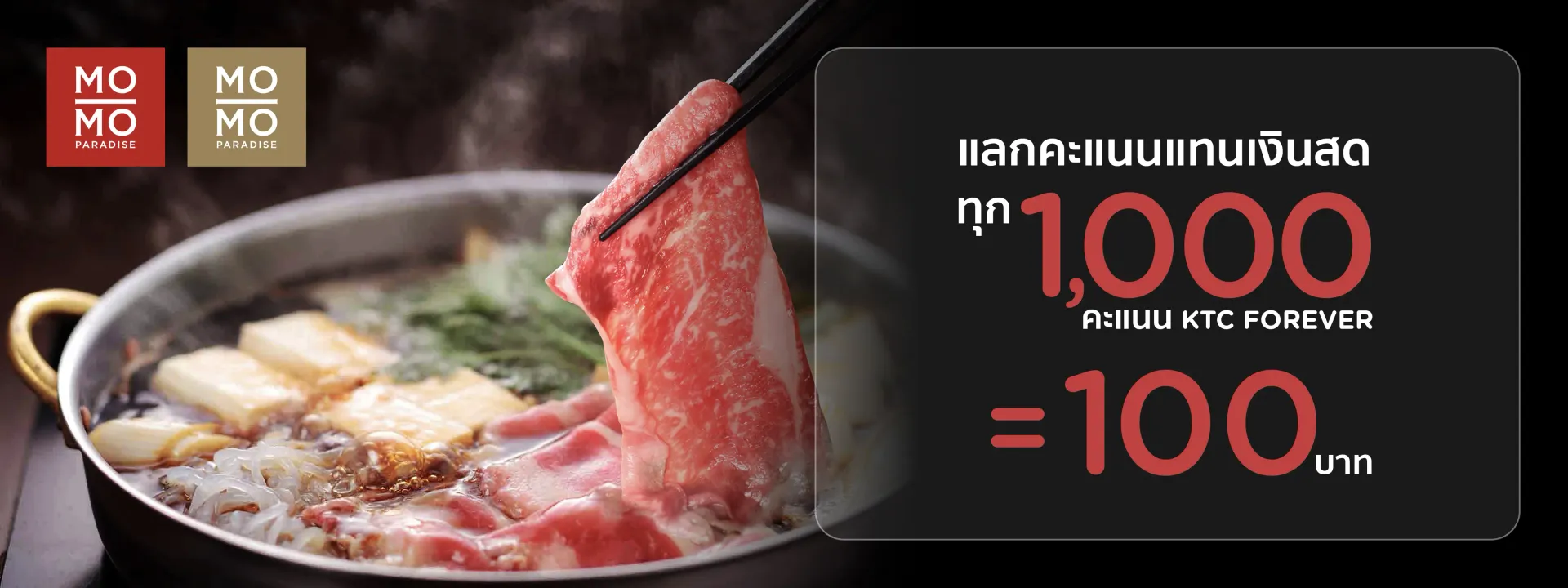 Redeem every 1,000 KTC FOREVER points for 100 baht in cash.