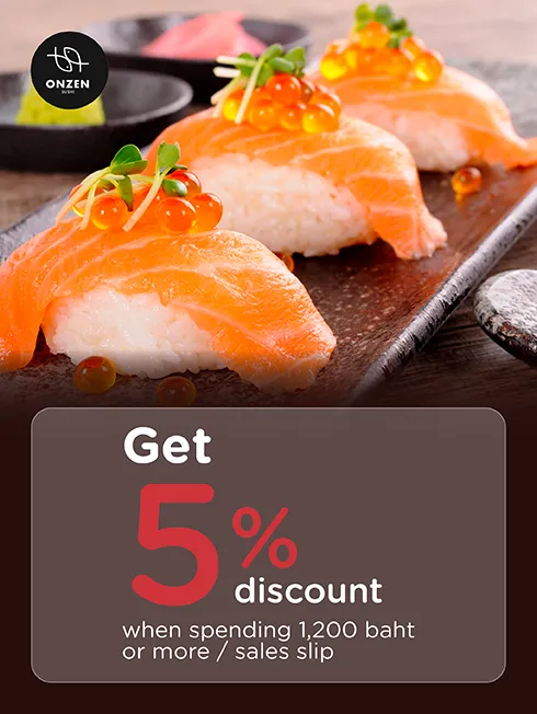 Get 5% discount when spending 1,200 baht or mre / sales slip