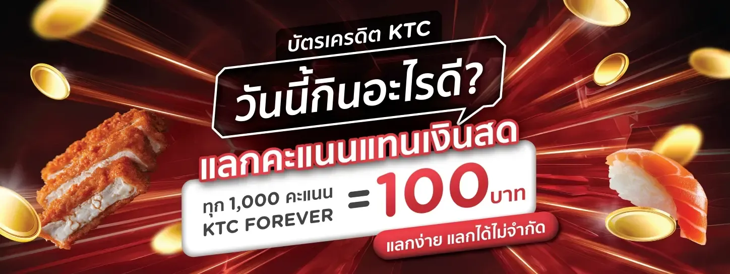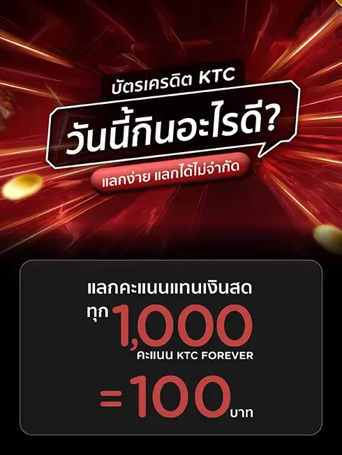 - This promotional campaign (“Promotion”) is provided by Krungthai Card Public Company Limited or KTC to offer the exclusive privileges to members of KTC credit card (“Cardmembers”) who have KTC FOREVER points (“KTC Points”) and spend on card at participating stores during 01/01/2025 – 31/12/2025 (“Promotion Period”) according to the specified terms and conditions only.