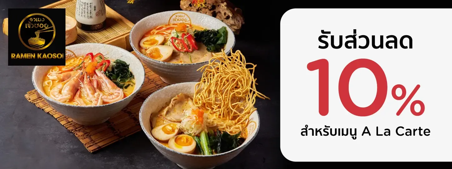 Get 10% discount for A La Carte menu. when spending 1,000 Baht /sales slip