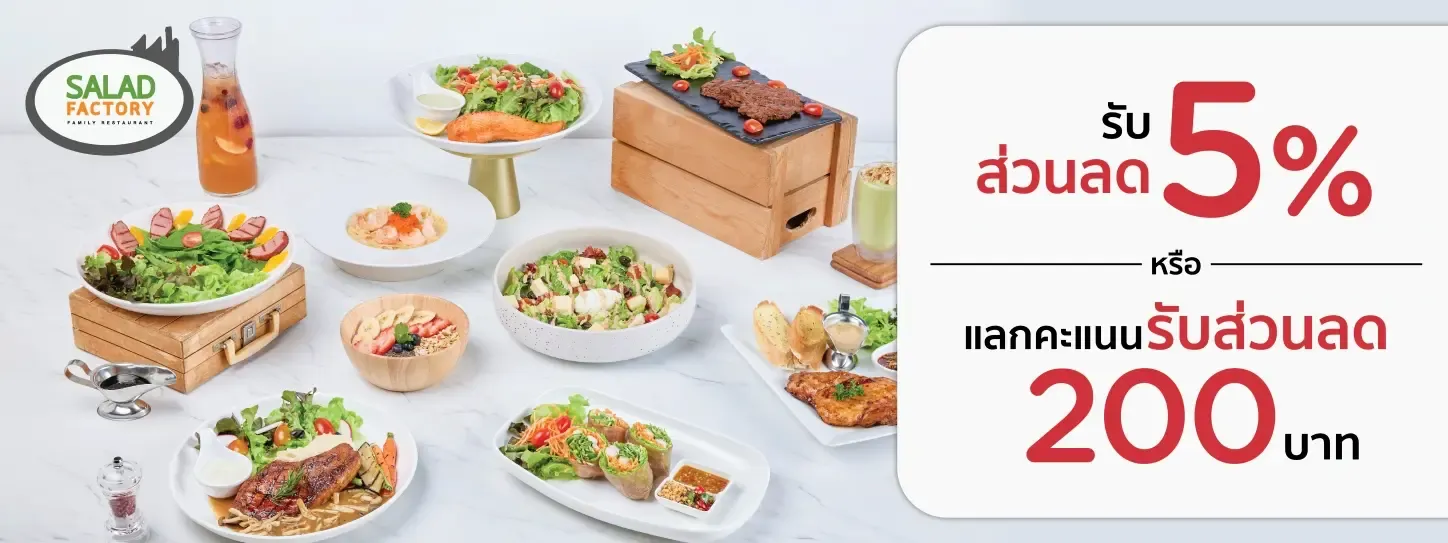 • Cannot be used together between 5% discount and redeem points for 200 Baht discount must choose only one option.