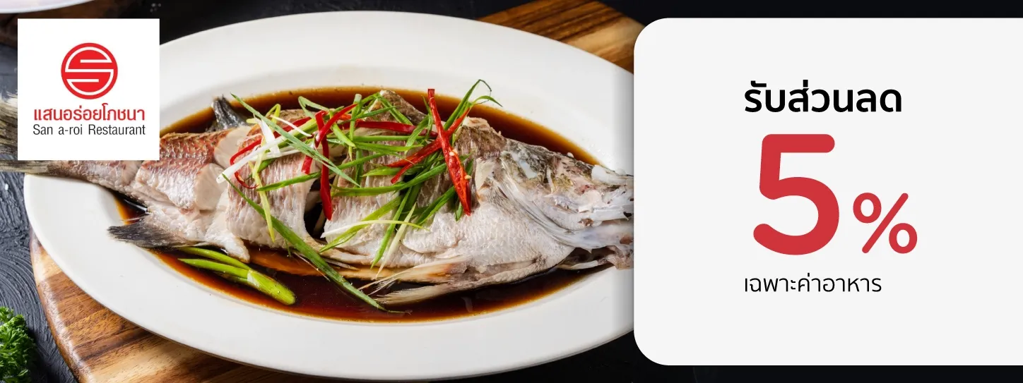 Get 5% discount on food only. When spending 1,000 Baht / sales slip
