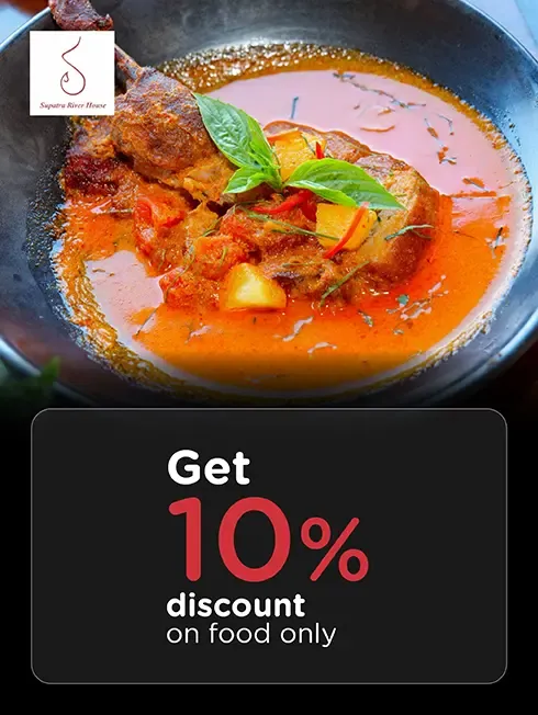 Get 10% discount on food only when spending 1,000 Baht/ Sales slips