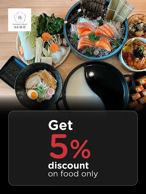 Get 5% discount on food only. When spending 1,000 Baht/sales slip