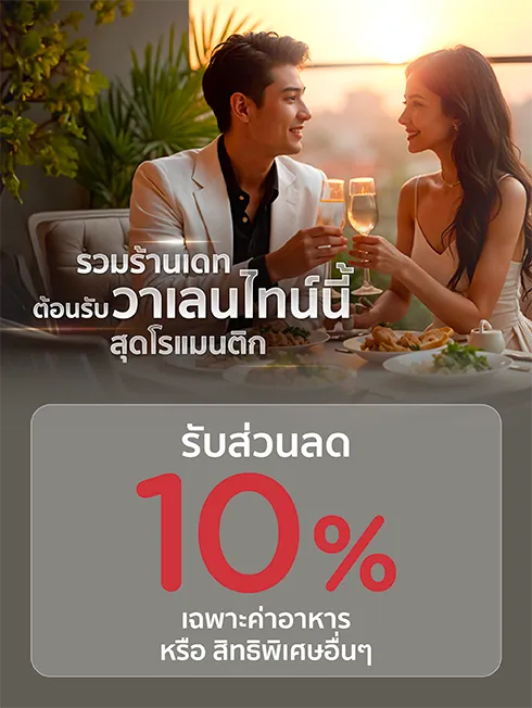 Privilege 1: 5% off food bill when spending 1,000 THB per sales slip *Cannot be combined with other restaurant promotions