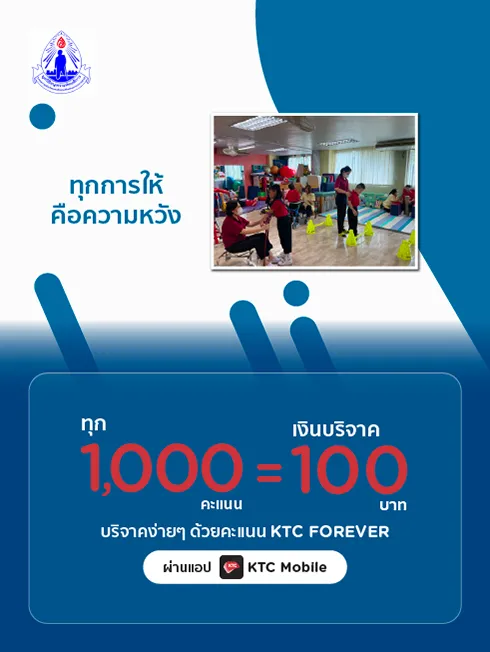 - Cardmembers can redeem 1,000 KTC points for donation 100 Baht via KTC Mobile App according to the specified terms and conditions.