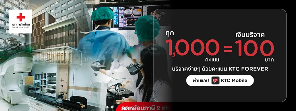 - Cardmembers can redeem 1,000 KTC points for donation 100 Baht via KTC Mobile App according to the specified terms and conditions.