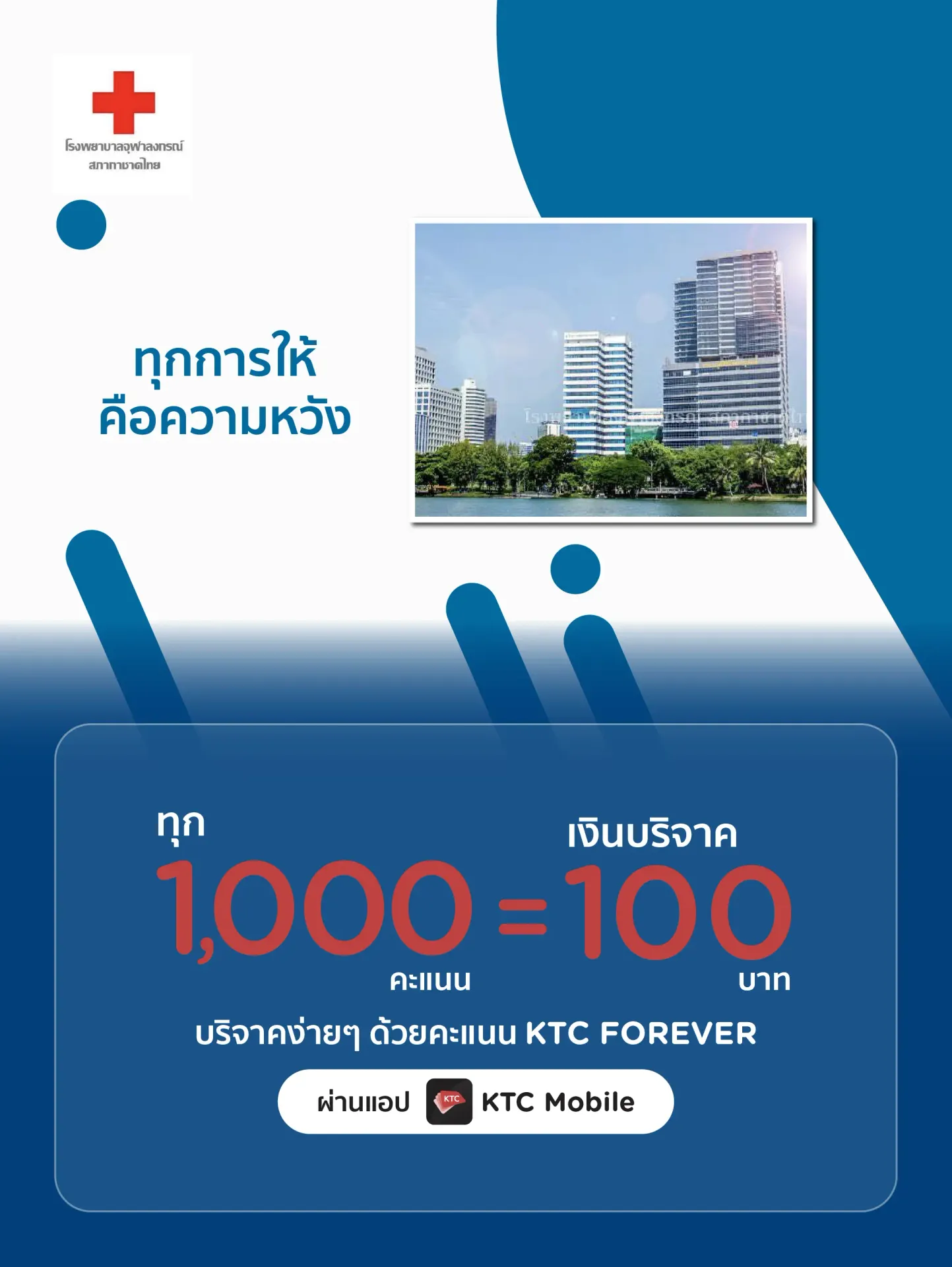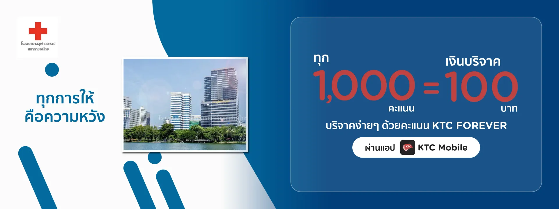 - Cardmembers can redeem 1,000 KTC points for donation 100 Baht via KTC Mobile App according to the specified terms and conditions.