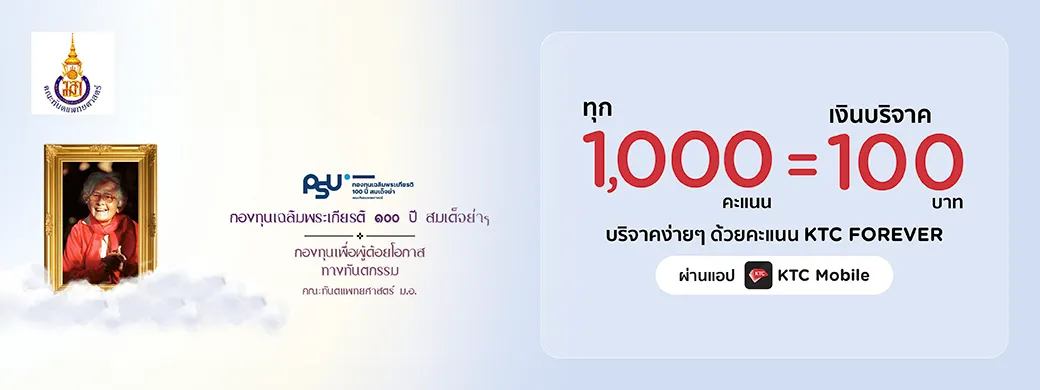 - Cardmembers can redeem 1,000 KTC points for donation 100 Baht via KTC Mobile App according to the specified terms and conditions.