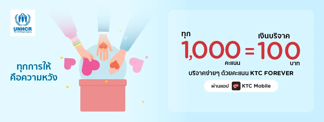 With more than 110 million people now displaced around the world, your support is needed more than ever. Donate KTC FOREVER (1,000 points equal to 100 Baht) and make a monthly donation by KTC credit card to provide life-saving aid in times of crisis.