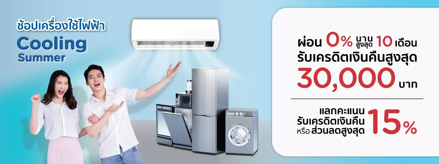 - Cash back is up to 30,000 baht per card member throughout the program.