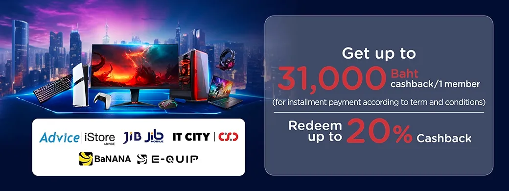 Privilege 1: Installment 0% Get up to 31,000 Baht credit cashback