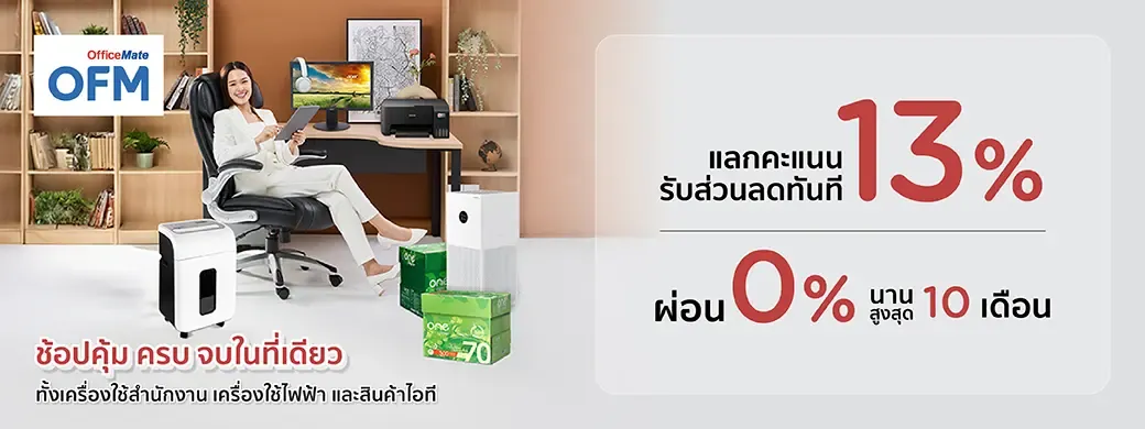 For spending of 1,500 baht or more, installment terms are as specified by Office Mate. Check promotions at the point of sale.