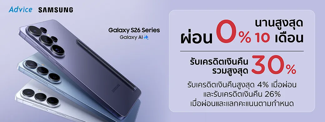 Applicable for installment plans and receive 26% credit cashback when redeeming KTC FOREVER at minimum of 1,000 points, but not exceeding the purchase amount per sales slip.