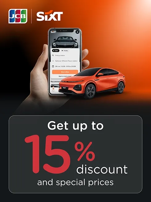 when booking car rentals, limousine services, or airline tickets under the specified terms and conditions, and make payment with all types of KTC JCB credit card at SIXT.