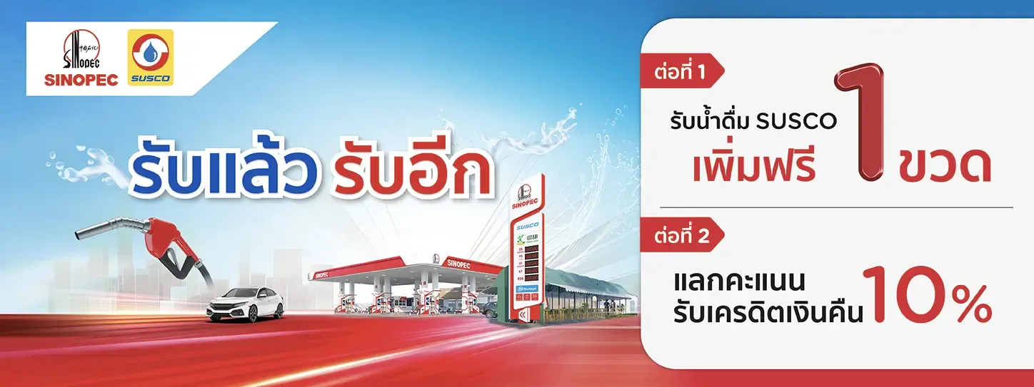 ● Get SUSCO Drinking Water size 1.5 Liter (Valued 12 Baht)