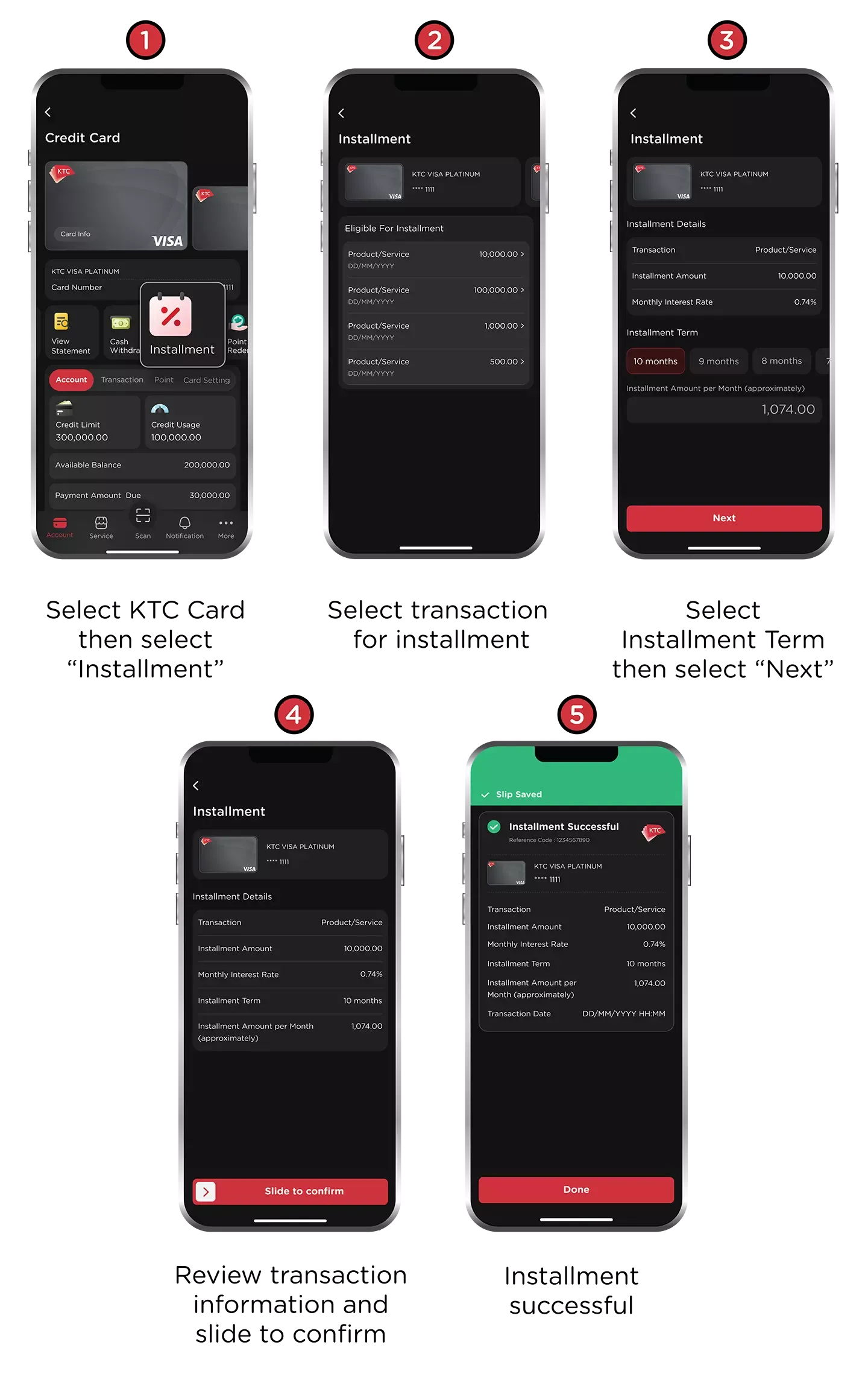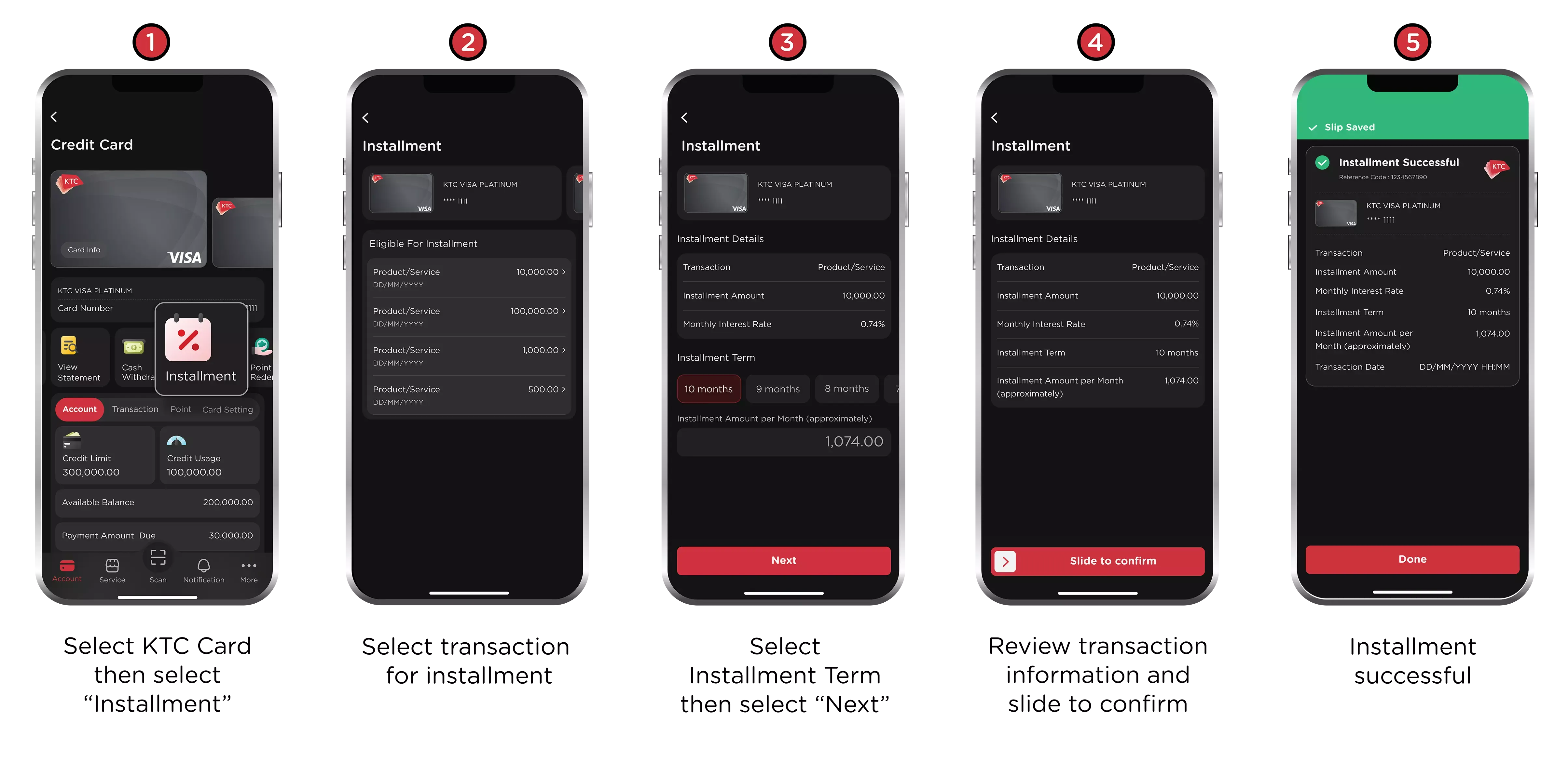 Remarks : KTC reserves the right to limit credit cash back under this promotion per 1 sales slip only. The transaction cannot be split into multiple sales slip to receive the privileges hereunder.
