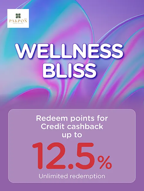 Send a SMS, type BWP, space following by 16-digit credit card number and follow with # the amount of KTC FOREVER points to redeem and send to 0613845000 (Messaging costs vary depending on the service provider) or by registering at www.ktc.co.th/wellnessmax, In this regards, the cardmembers must receive KTC’s reply message confirming the registration in order to eligible participate in this promotion. registration per sales slip every time for points redemption within the date of transaction.