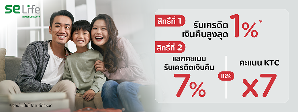 When paying for Southeast Life Insurance premiums, both the first year premium and/or the renewal year With KTC credit card, Get up to 1% cash back and redeem every 1,000 KTC points for 7% cash back plus KTC points x 7
