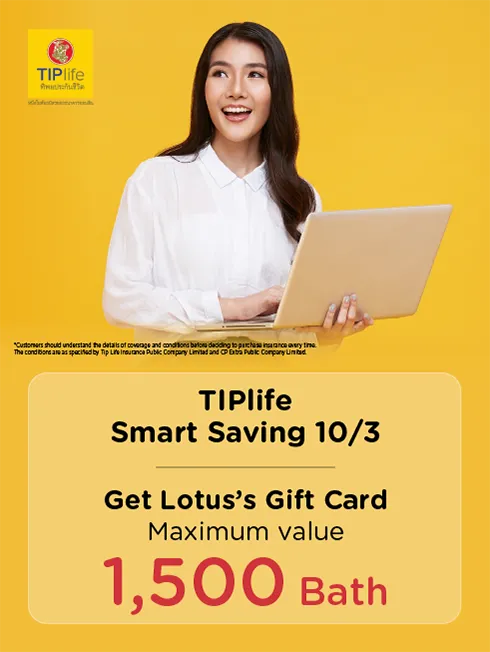- This privilege is only for the payment of the first-year premium on participating life insurance products of Tip Life Insurance Public Company Limited and via the specified online channels only.