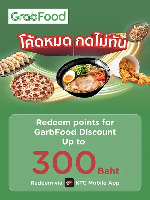 3. Consumers must fill a code which is redeemed from KTC Application and choose GrabPay as a payment method using a KTC Credit Card before placing the food order.