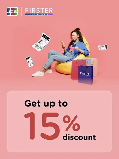 - The discount code can be used at www.firster.com & FIRSTER BY KING POWER application only. Enter promotion code JCB1525 from 1 April 2025 – 31 December 2025.